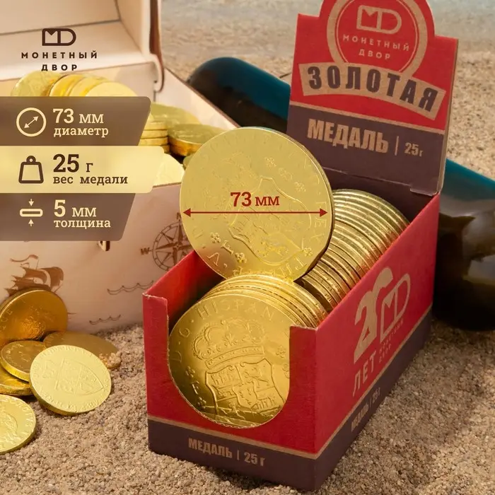 Медали шоколадные «Золото пиратов», с наклейкой, 25 г