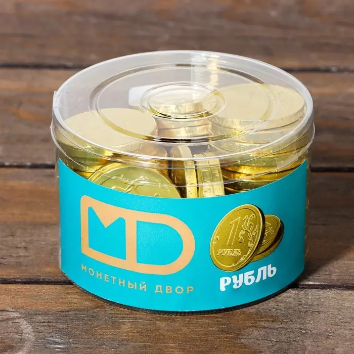 С шоколадными монетами в банке «Рубль» каждый момент становится особенным. Убедитесь сами, что сладости могут быть не только вкусными, но и веселыми, и создавайте незабываемые впечатления с каждой монетой!