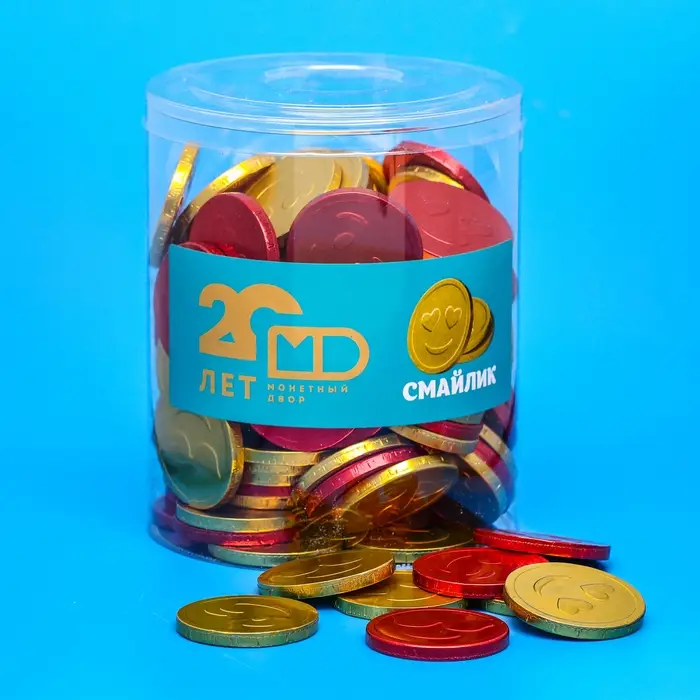 Монеты в банке «Смайлик» — это не просто конфеты, а маленькая радость, способная скрасить серые будни и добавить ярких эмоций в повседневную жизнь. Порадуйте себя и своих близких этим сладким чудом, которое вызовет улыбки и поднимет настроение!