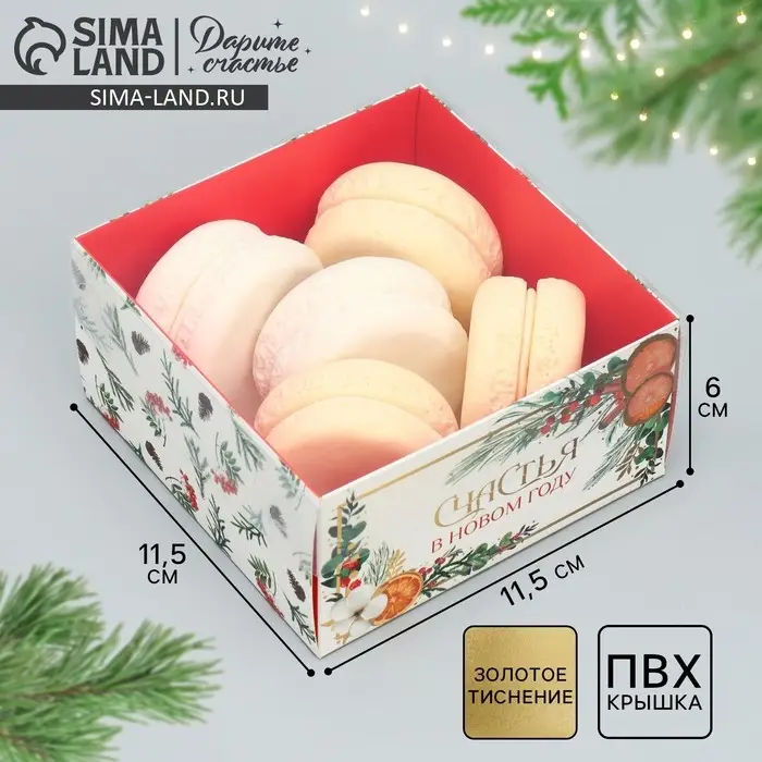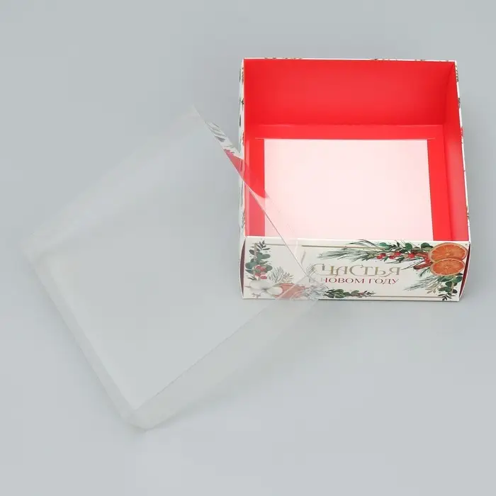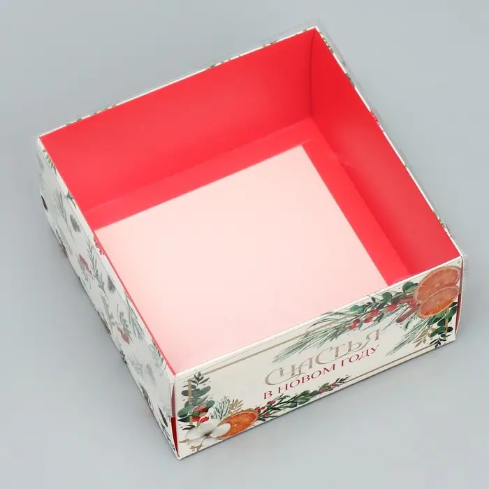 Коробка для кондитерских изделий с пластиковой крышкой «Счастья в новом году», 12 х 6 х 11.5 см