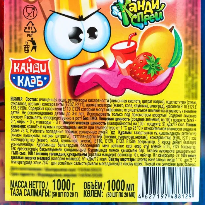 Жидкая конфета-спрей - это вкусное лакомство для детей всех возрастов. Она имеет богатую палитру вкусов и непременно понравится ребенку. Конфета находится в удобной бутылочке в ярком цветовом оформлении. Эту сладость можно брать с собой куда угодно: на прогулку, в поездку, на природу. Конфета представлена в следующих вкусах - манго, клубника, кола, виноград.