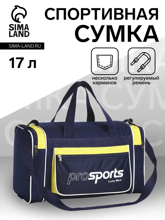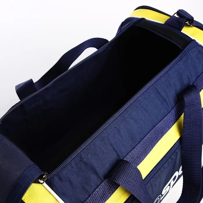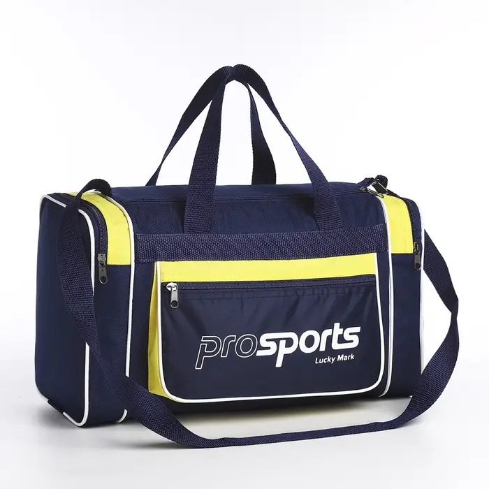 Сумка спортивная мужская на молнии, 3 наружных кармана, длинный ремень, средний размер, цвет синий/жёлтый