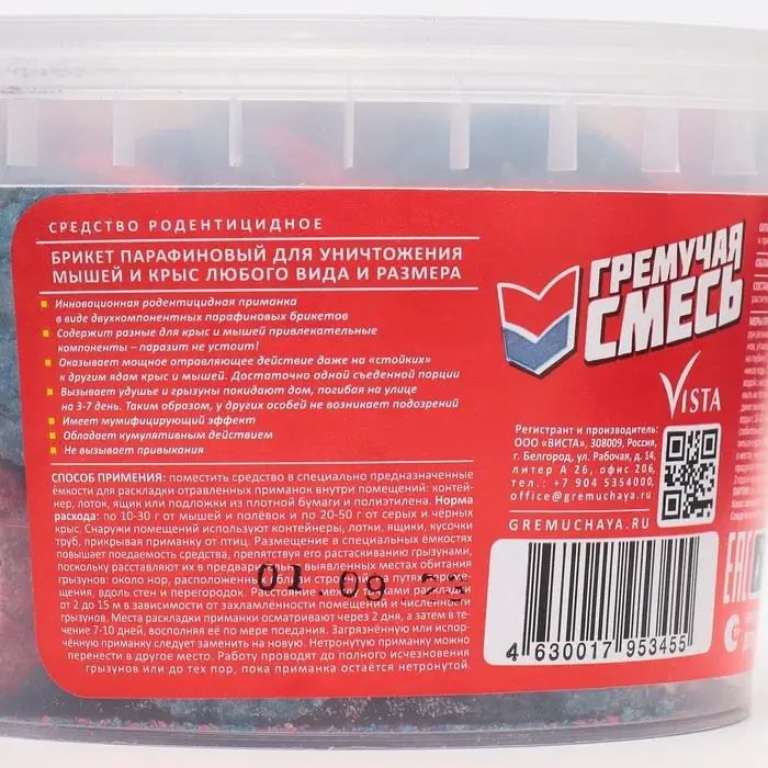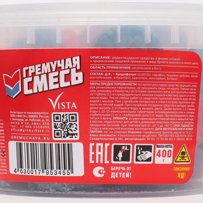 Тесто-брикеты от грызунов "Гремучая смесь", парафиновый брикет, 400 г