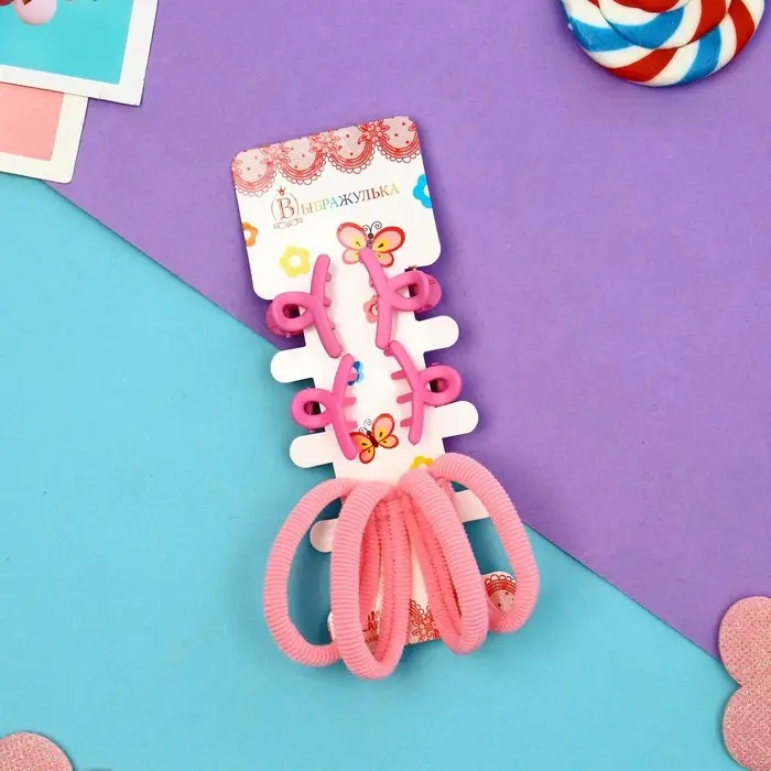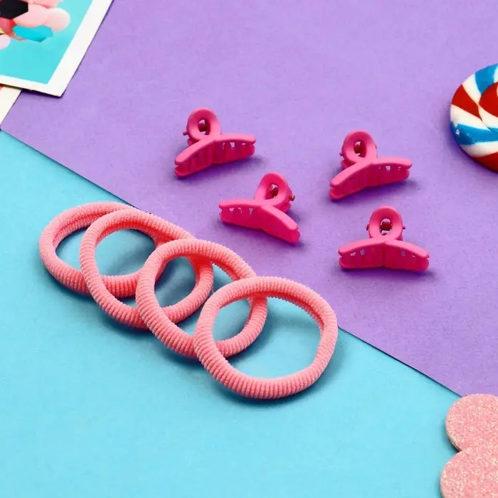 Набор для волос "Оливия" (4 резинки 4 см, 4 краба 2,5 см) петелька, розовый