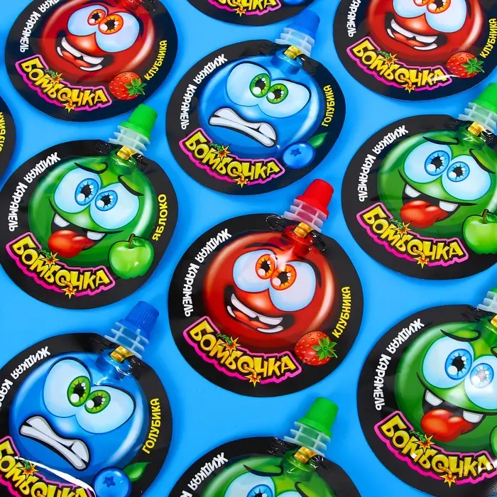 Оригинальный сладкий подарок для мальчиков и девочек! Жидкая карамель "Бомбочка" с насыщенным вкусом. Конфеты в индивидуальной упаковке с ярким дизайном, которые можно взять с собой на прогулку, в поездку, путешествие, в детский сад или школу. Такое угощение придется по вкусу любому сладкоежке! Прекрасный подарок детям на любой праздник.