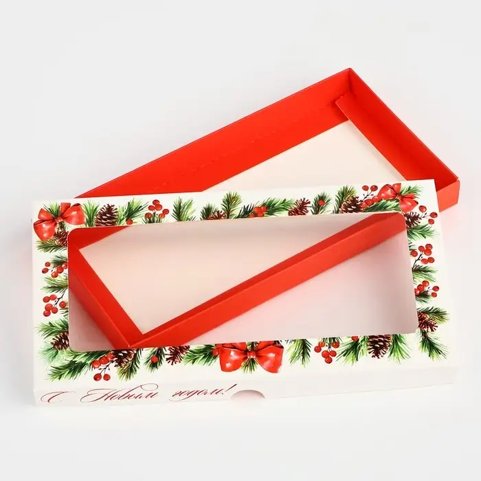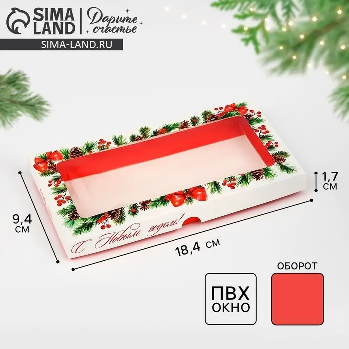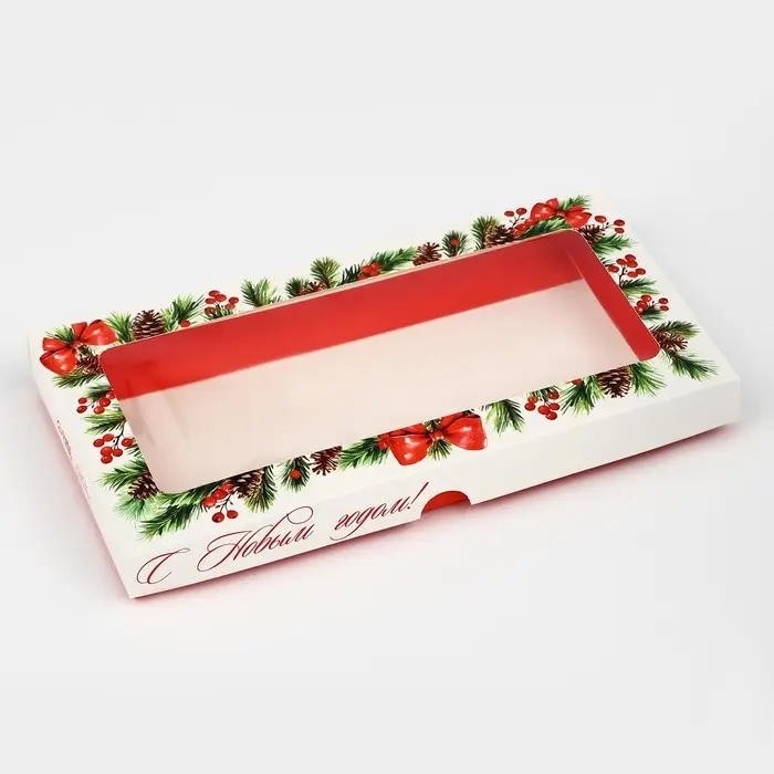 Коробка для шоколада «Новогодняя ботаника», с окном, 9.4 х 1.7 х 18.4 см