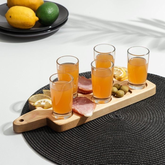 Доска - менажница для подачи шотов Adelica, на 5 рюмок, 30×13×1,8 см, берёза