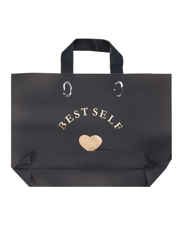 Чёрный пакет с петлевой ручкой — это не просто упаковка, а надёжный помощник в быту. Он подойдёт для переноски продуктов, хранения вещей или использования в качестве упаковки для подарков. Его прочность и вместительность делают его незаменимым в любой ситуации.