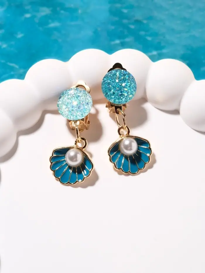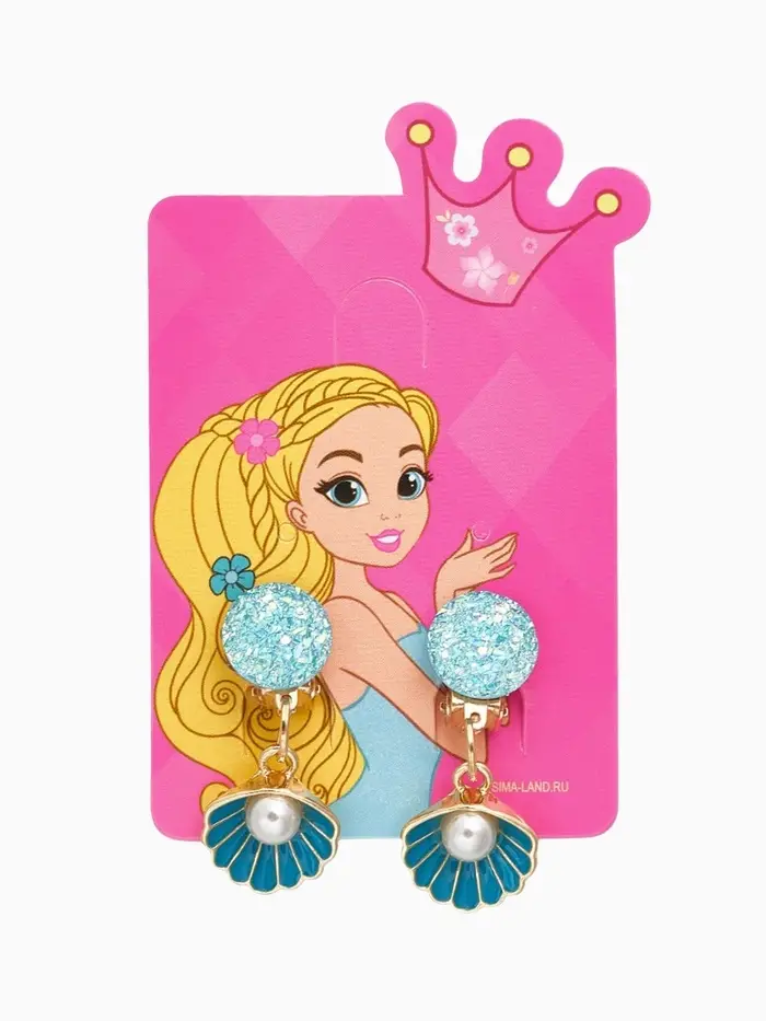 Клипсы детские «Выбражулька» жемчужина в ракушке, цвет голубой