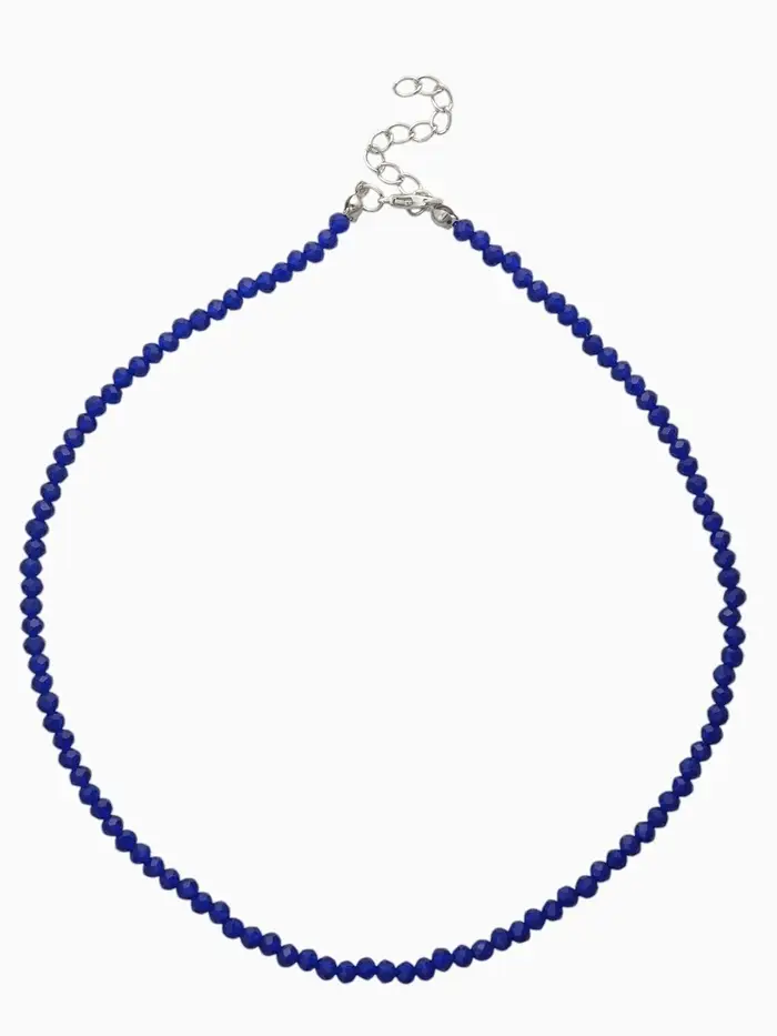 Чокер из бисера «Хрусталь» тёмно-синий в серебре, 37 см + 5 см доп, цепочка