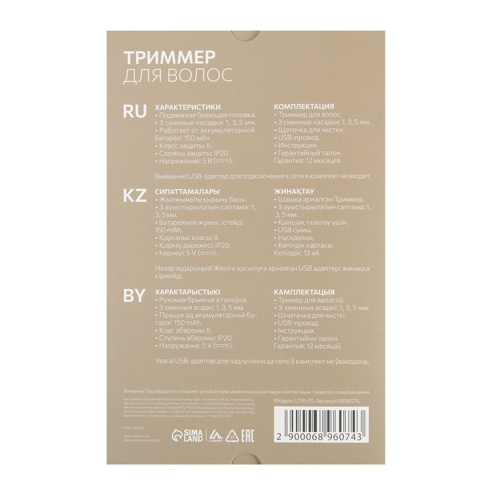 Триммер Luazon LTRI-06, для тела/лица, от USB, белый