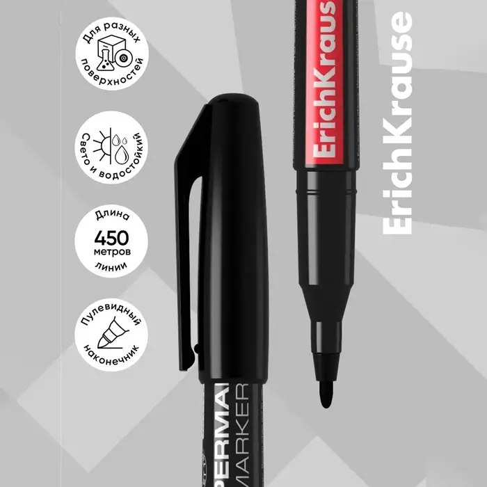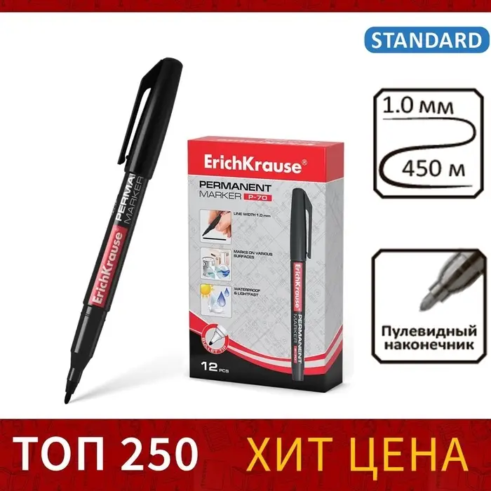 Маркер перманентный ErichKrause P-70, 1.0 мм, для письма на любой поверхности, чёрный