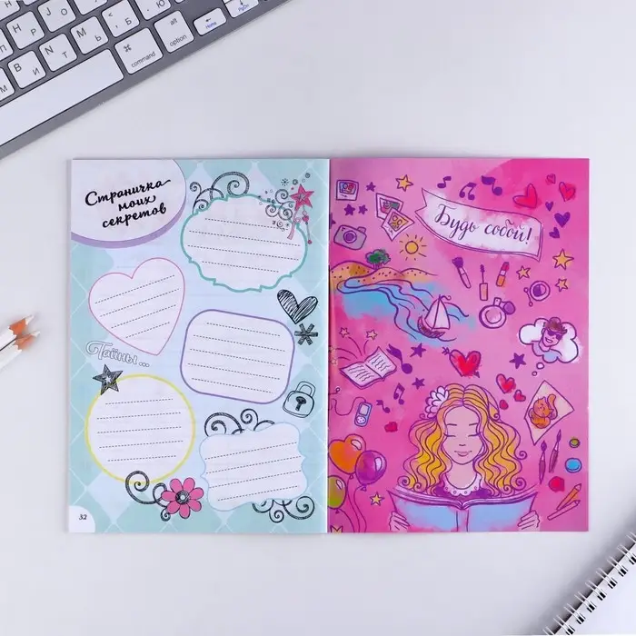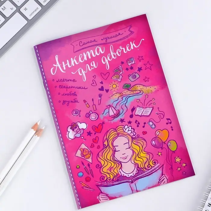 Анкета на замочке, в твердой обложке А6, 40 листов «Анкета классной девчонки и ее подруг»
