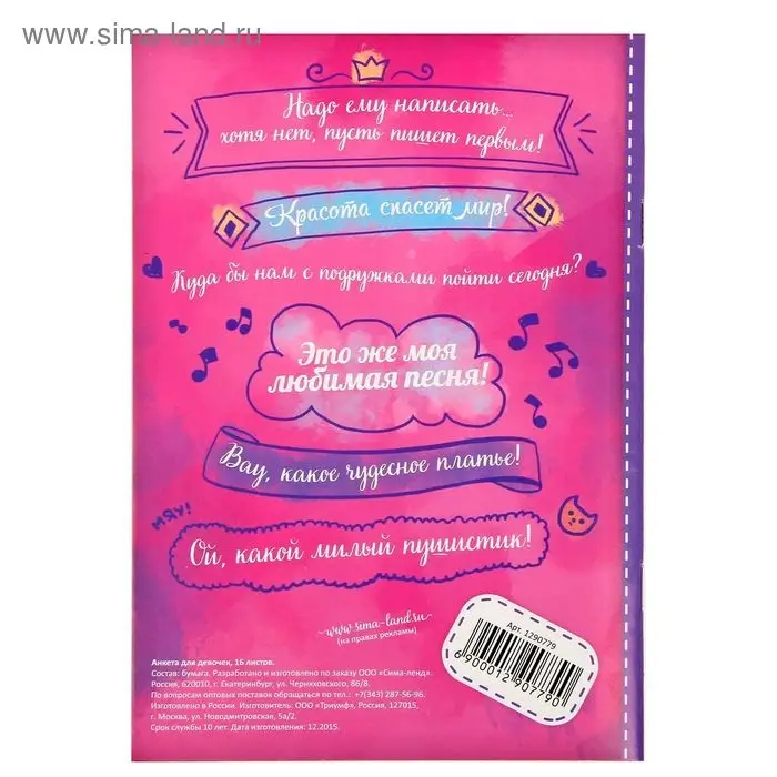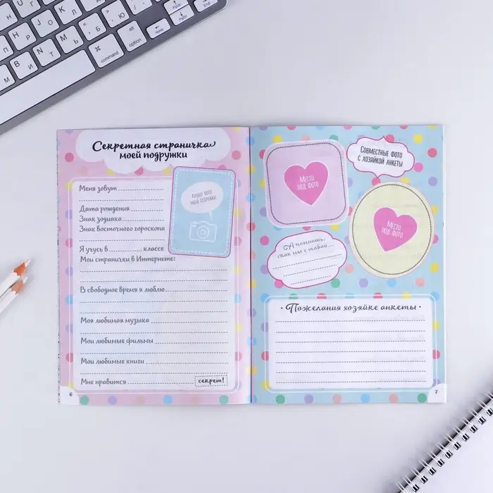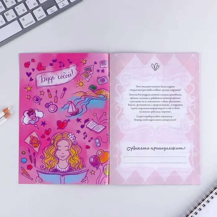Сделав такой подарок юной моднице, вы обеспечите ей массу положительных эмоций и свободу самовыражения. Пусть малышка сохранит свою анкету и заглянет в неё спустя несколько лет!