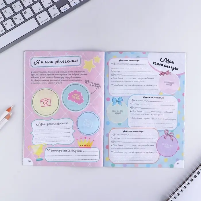Наша яркая анкета понравится любой маленькой принцессе. Сюда она запишет свои увлечения, поделится сокровенными мыслями и секретами, составит планы на будущее. Девочка научится складно излагать мысли и анализировать поступки.