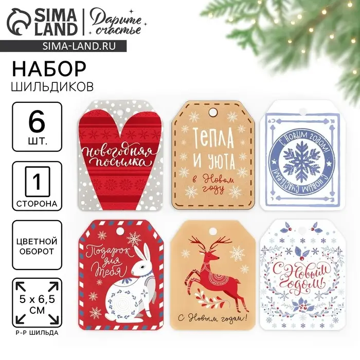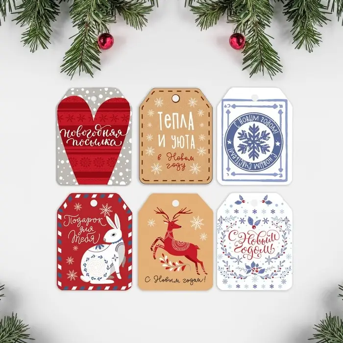 Набор из 6 шильдиков на подарки «Новогоднее настроение», 16 х 24 см, 6 шт