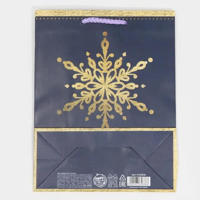 Пакет подарочный новогодний ламинированный «Снежинка», MS 18 х 23 х 8 см