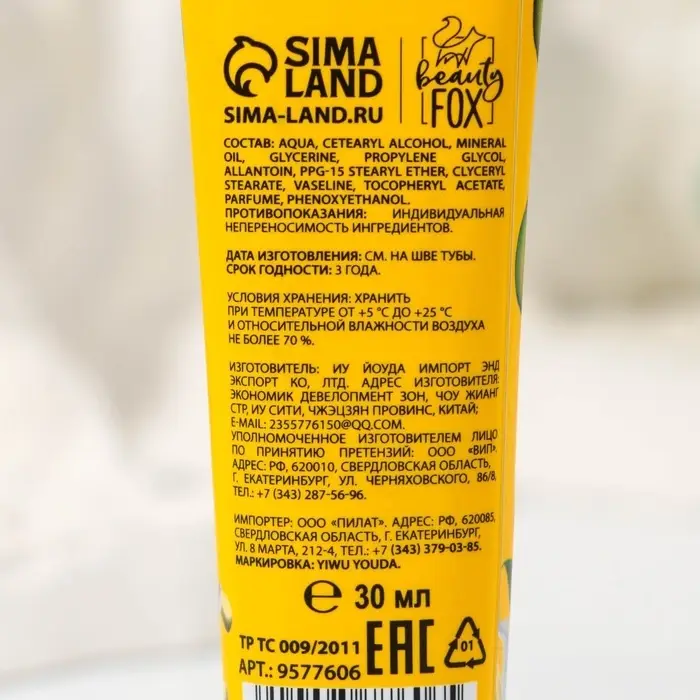 Крем для рук, увлажнение, 30 мл, аромат авокадо, BEAUTY FOOD