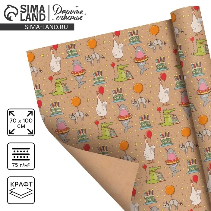 Бумага упаковочная крафтовая «Праздничные животные», 70 х 100 см