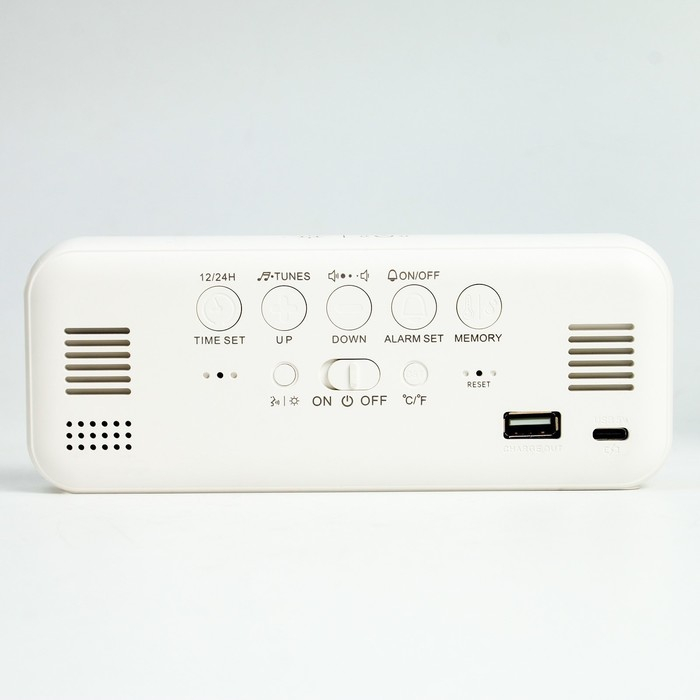 Часы электронные настольные, будильник с проекцией на потолок, календарем, USB, белая индикация 9742