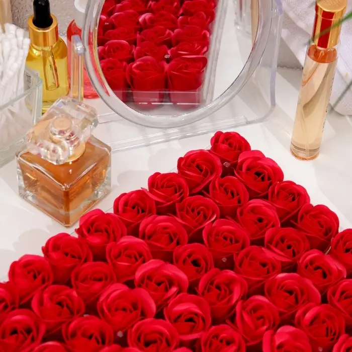 Благодаря точному повторению мелких деталей мыльные розы схожи с настоящими цветами. Композиция наполняет помещение тонким и ненавязчивым цветочным ароматом.