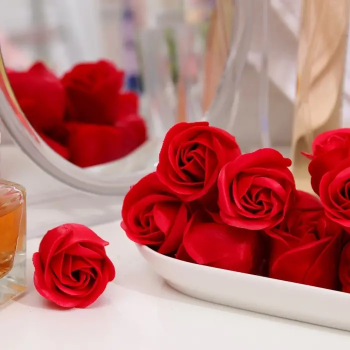 Композиции из мыльных цветов имеют не только эстетическое, но и практическое назначение. Благодаря продолжительному сроку годности розы могут стать хорошей заменой живой композиции. Их можно использовать:
