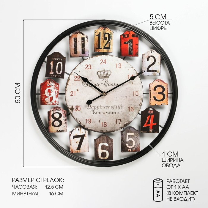 Часы настенные интерьерные большие Лофт, d=51 см