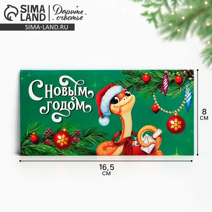 Конверт для денег «Змея 2025», зелёный, 16.5 х 8 см