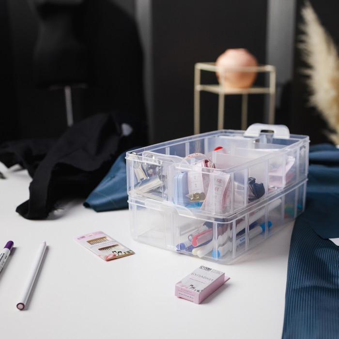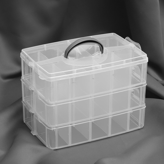 Органайзер для рукоделия, со съёмными ячейками, 3 яруса по 10 отделений, 24,5 × 16,5 × 18 см, с ручкой, цвет прозрачный
