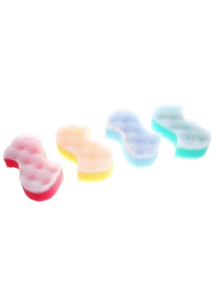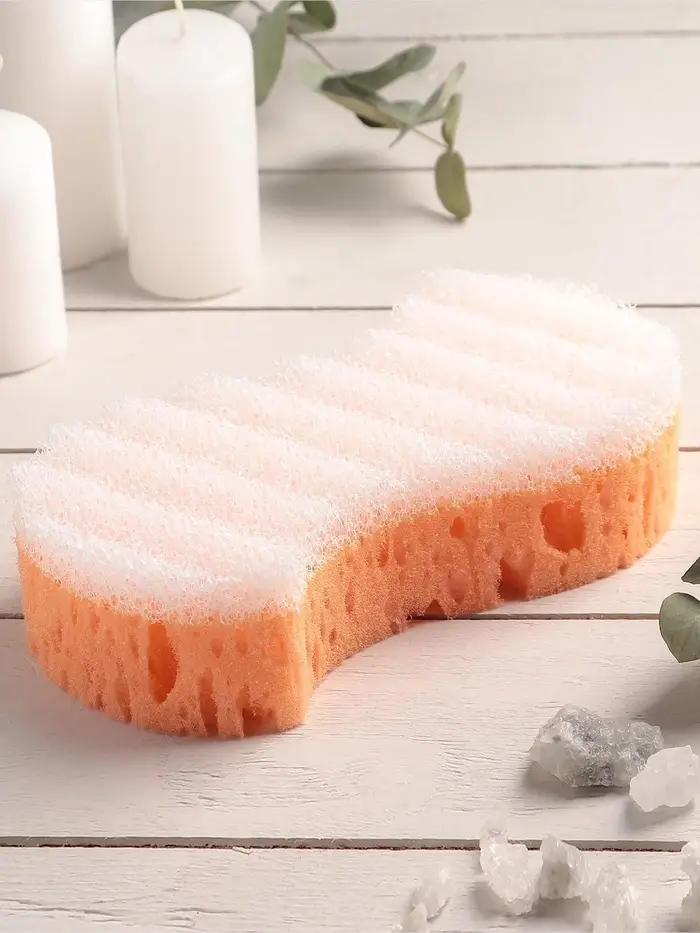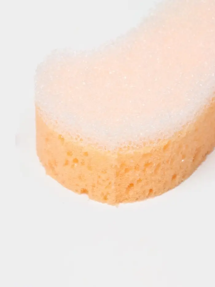 Губки состоят из двух слоёв — мягкого деликатного и грубого пористого. Изделия хорошо применять для массажа тела. Шероховатая сторона губки эффективно стимулирует кровообращение, отшелушивает и удаляет мёртвую кожу. Благодаря пористой структуре губки моющие средства обильно пенятся даже в небольшом количестве.