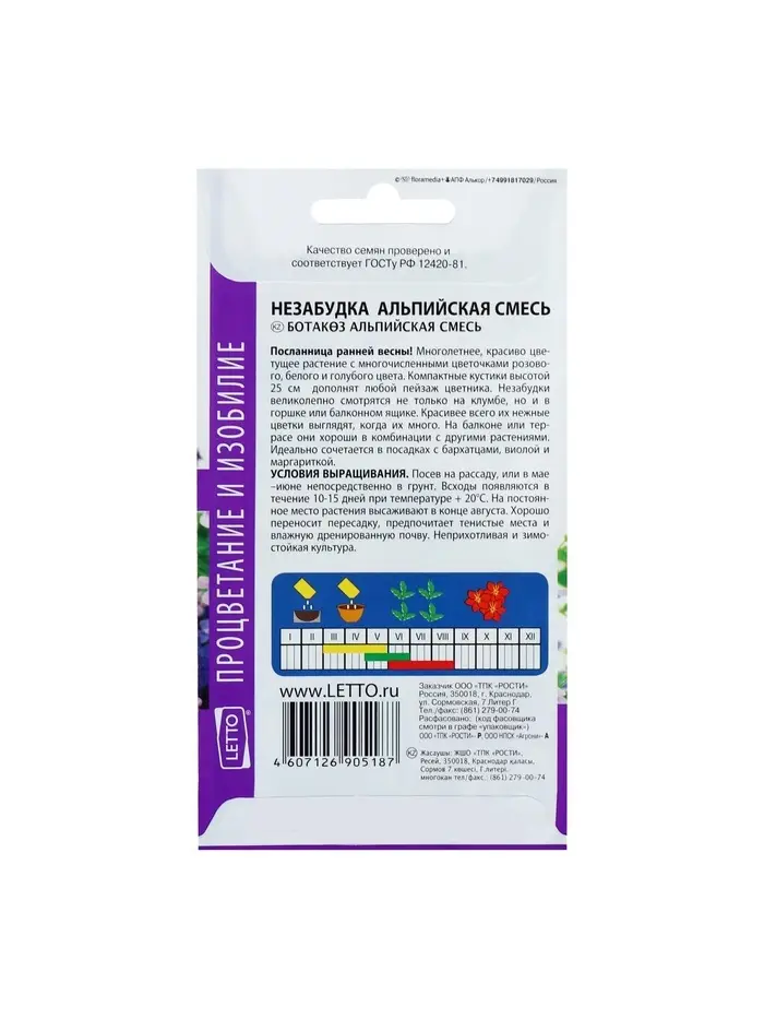 Семена цветов Незабудка "Альпийская смесь", Мн, 0,1 г