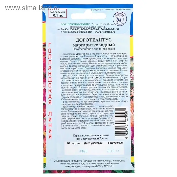Семена цветов Доротеантус маргаритковый Смесь, О, 0,1 г