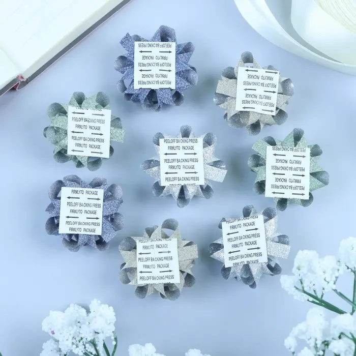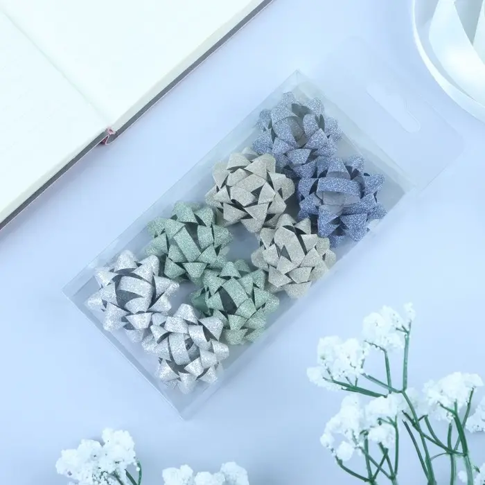 Бант - звезда №3.5, фасовка 8 шт., с блестками, МИКС