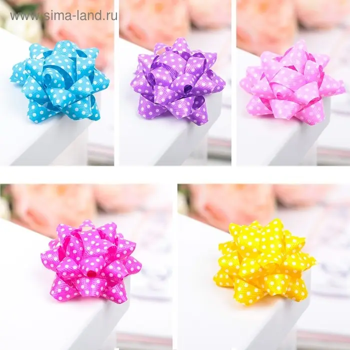 Бант-звезда №10,2 (НАБОР 6 ШТ) горох, цвета ассорти