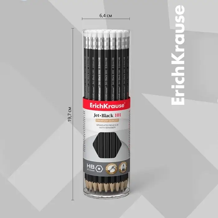 Классический шестигранный чернографитный карандаш с ластиком из отборной древесины, твердость НВ. Специальная пропитка древесины и сплошная проклейка грифеля обеспечивает высокую ударопрочность. Мягкая древесина и идеальная центровка грифеля гарантируют легкую заточку с экономным расходом карандаша. Грифель диаметром 2,2мм не царапает бумагу и не крошится. Ластик карандаша средней жесткости изготовлен из экологически чистого и гипоаллергенного материала термопластичной резины (TPR). Не содержит ПВХ.