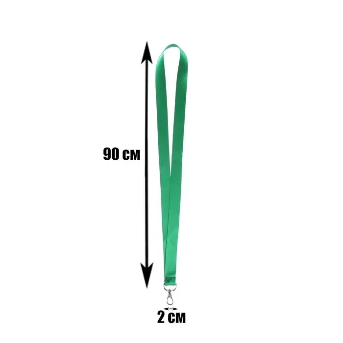 Лента для бейджа ширина-20 мм, длина-90 см с металлическим карабином, зелёная