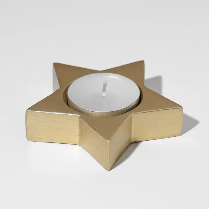Подсвечник из дерева Джати, d 4 см, 9х9х10 см, цв. бежевый