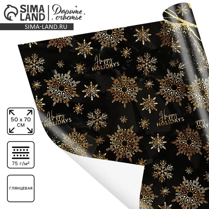 Упаковочная бумага на новый год Happy holidays, 50 х 70 см, глянцевая