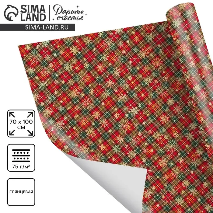 Упаковочная бумага на новый год «Новогодний принт», 70 х 100 см, глянцевая