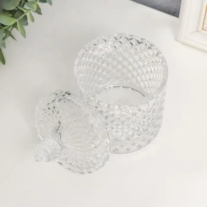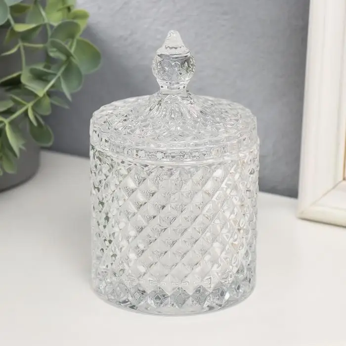 Шкатулка стекло "Цилиндр с ромбиками" прозрачная 14,5х8,5х8,5 см