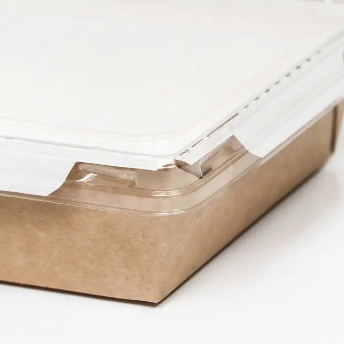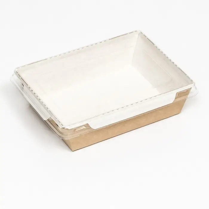 Контейнер с прозрачной крышкой, крафт, 0,4 л, 14,5 х 9,5 х 4, 5 см