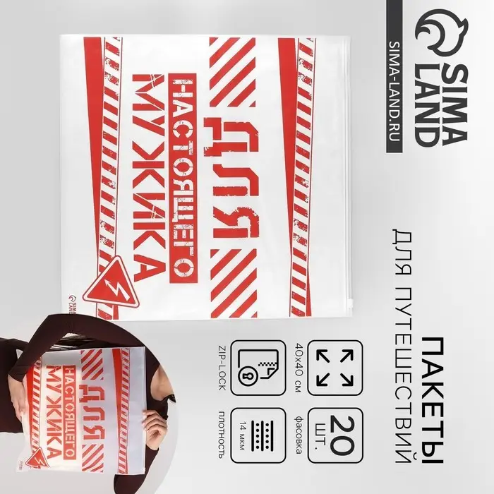 Зип пакет для путешествий «Для настоящего мужика», 14 мкм, 40 х 40 см.
