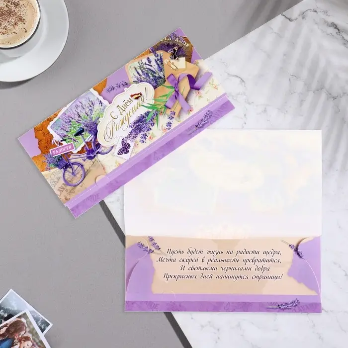 Конверт для денег "С Днём Рождения!" лаванда, 16х8 см