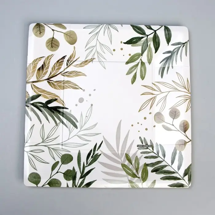 Тарелка сделана из плотного картона, что гарантирует её прочность и устойчивость к влаге.