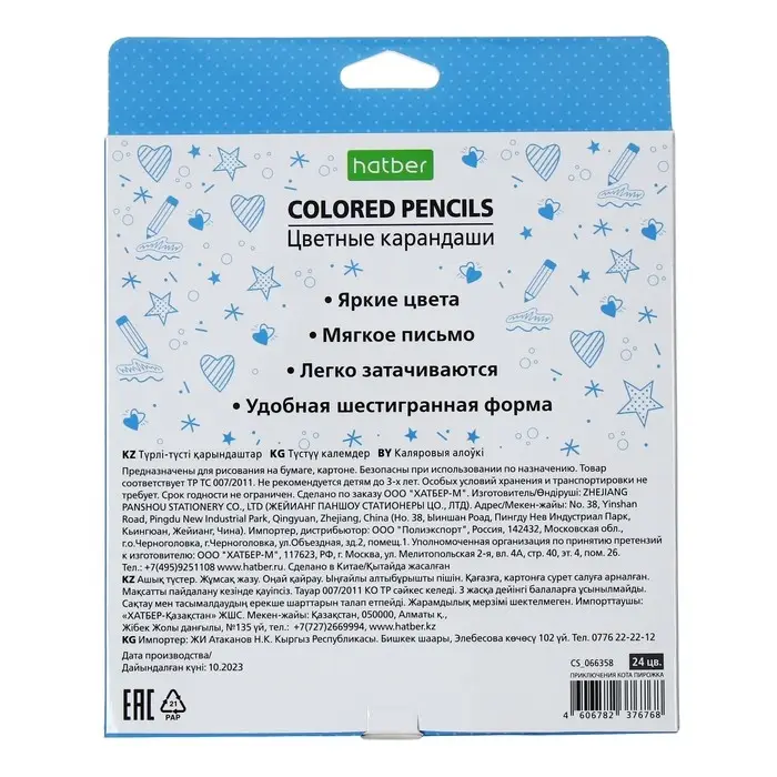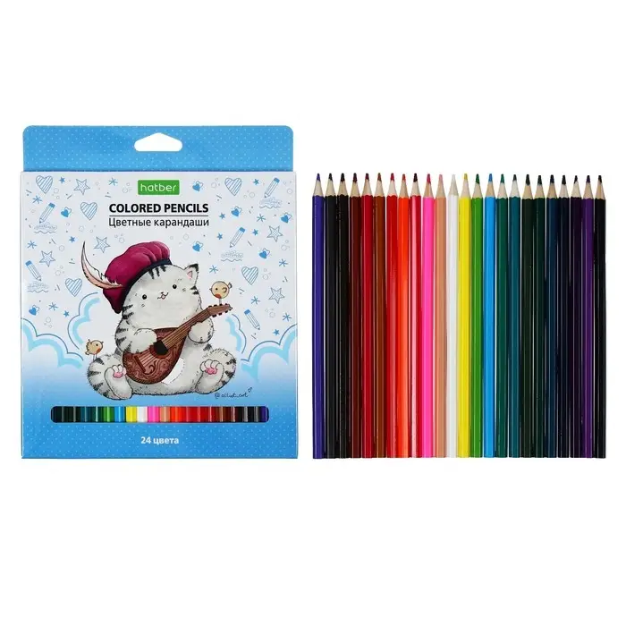 Карандаши 24 цветов "Приключения кота Пирожка", картонная коробка, европодвес