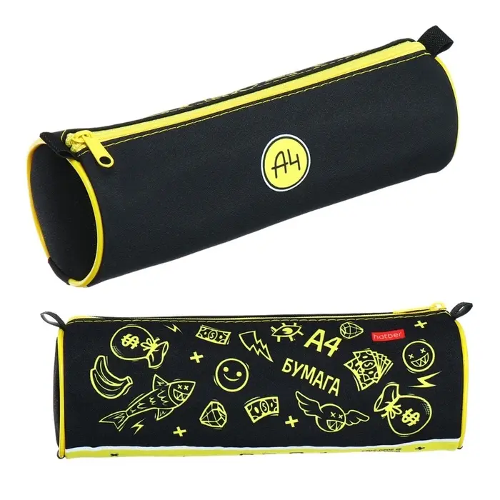 Пенал-тубус мягкий 70 х 210 мм, Hatber "Влад А4" чёрный/жёлтый Npt42138