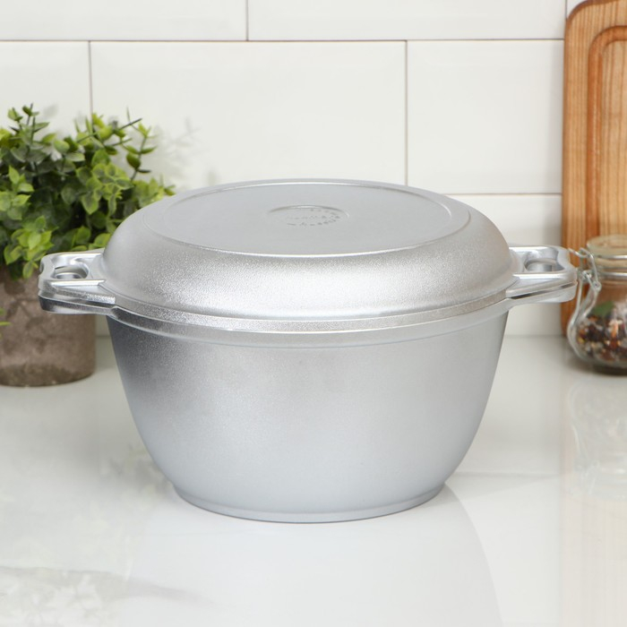 Казан, 3 л, крышка-сковорода, литые ручки, цвет серебряный