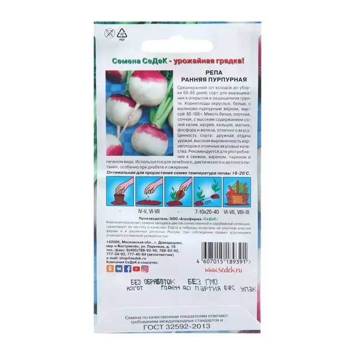 Семена Репа Самаркандская местная Сделано в СССР, Ц/П,1 г