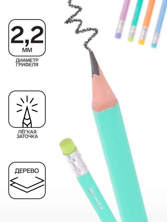 Эргономичный трехгранный чернографитный карандаш из отборной древесины с ластиком, твердость НВ. Четыре цвета корпуса, ластик в цвет корпуса. Специальная пропитка древесины и сплошная проклейка грифеля обеспечивает высокую ударопрочность. Мягкая древесина и идеальная центровка грифеля гарантируют легкую заточку с экономным расходом карандаша. Грифель диаметром 2.2 мм не царапает бумагу и не крошится. Ластик карандаша средней жесткости изготовлен из экологически чистого и гипоаллергенного материала термопластичной резины (TPR). Не содержит ПВХ. Длина 188 мм.