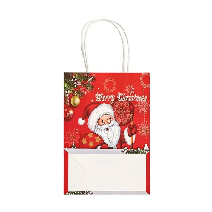 Пакет бумажный подарочный новогодний крафт «Дед Мороз с подарками» 120 г/м 15×8×21 см